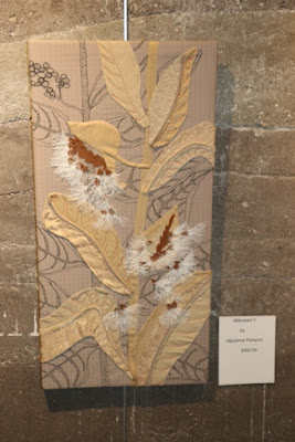 I shared that while at Lorna's I saw some friends and later that evening one called to say they had gone to the Fibre Art Network show at Van Dusen Garden. Rita and I had forgotten about it and had headed down to Granville Island instead. So Sunday I decided it would be a nice outing to take my mom to see. Ironically we ran into Lorna and her mom; they had just finished seeing it. Here are some overview pictures of the show.