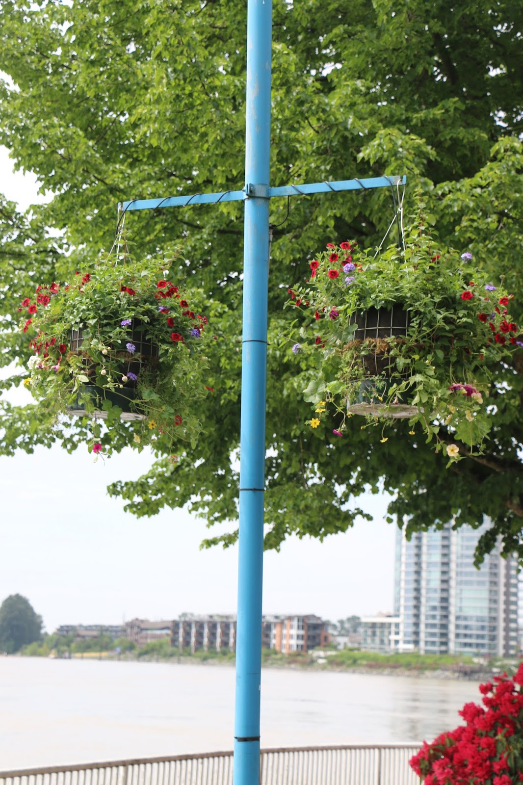 In preparation for the Victoria Day weekend there were hanging baskets placed below the support poles along the quay.
