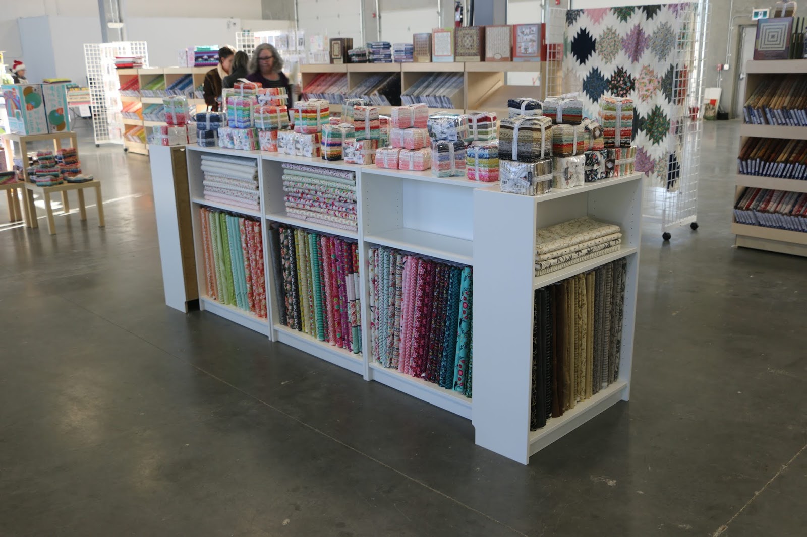 I stood in front of their double wide fabrics and took a picture across the space. It's located in an industrial area near the Pitt Meadow's Airport. They also have an online quilt shop click here to view.
